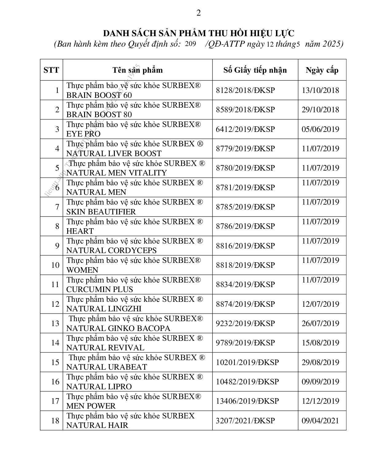 Trong 18 sản phẩm bị thu hồi hiệu lực Giấy tiếp nhận đăng ký bản công bố, có thực phẩm bảo vệ sức khỏe Subrex Brain Boost 60 (viên bổ não), thực phẩm bảo vệ sức khỏe Subrex Natural liver boost (được giới thiệu là hỗ trợ thanh nhiệt, giải độc gan) hay thực phẩm bảo vệ sức khỏe Subrex® Skin Beautifier...