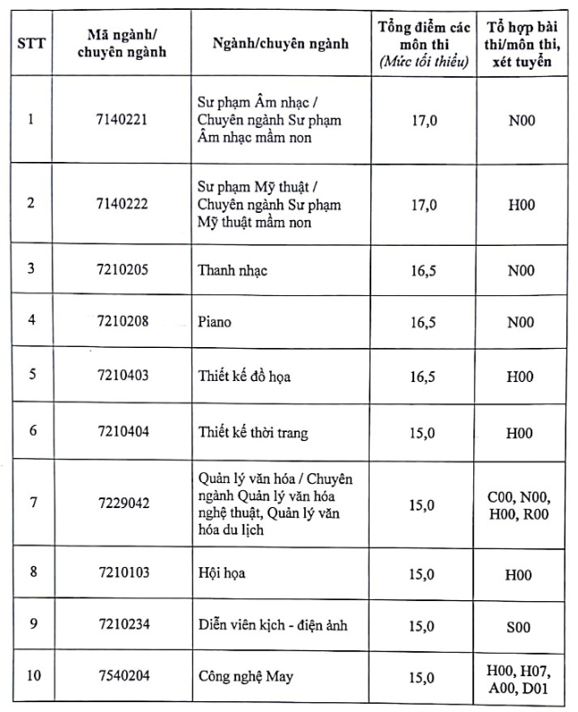 Tổng điểm môn văn hóa và môn năng khiếu (không nhân hệ số) đạt ngưỡng đảm bảo chất lượng đầu vào của trường ĐHSP Nghệ thuật Trung ương là từ 15-17 điểm (chưa nhân hệ số các môn năng khiếu).