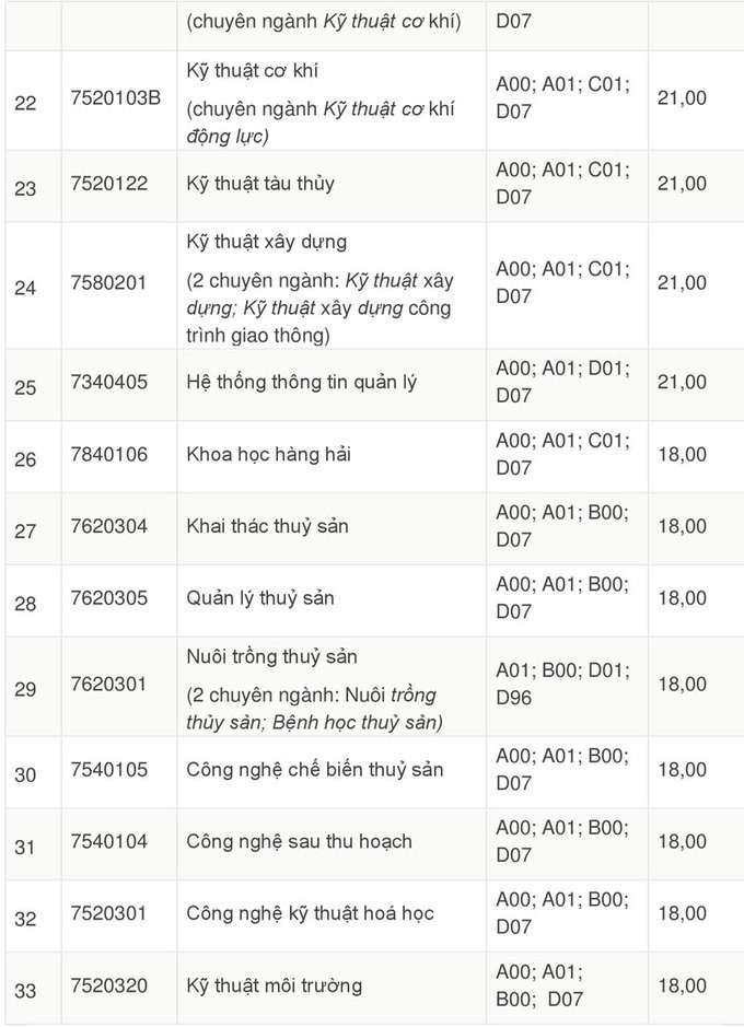 Trường ĐH Nha Trang vừa công bố điểm chuẩn đại học theo phương thức xét tuyển bằng học bạ, trong đó 3 ngành là: Ngôn ngữ Anh, Quản trị kinh doanh, Quản trị dịch vụ du lịch và lữ hành có mức điểm cao nhất là 25 điểm.