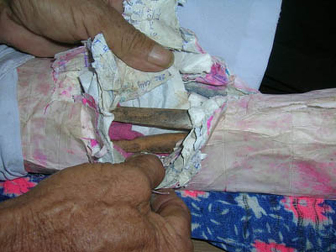 Hai thanh màu nâu được ông Vân khẳng định là "xương" của vợ.