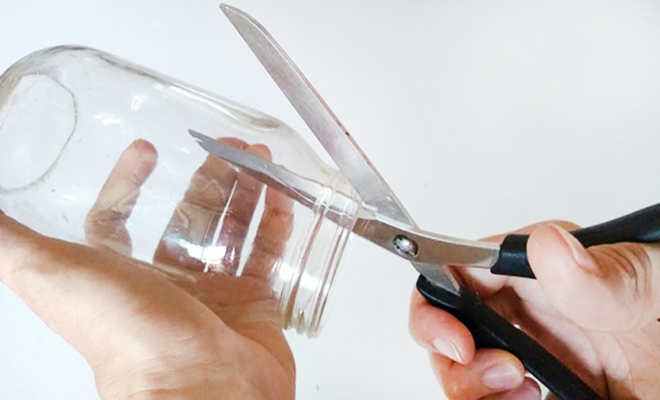 Khi kéo của bạn bị cùn không còn được sắc bén như trước, bạn hãy tận dụng những đồ vật trong gia đình như: hũ, chai, lọ, ly được làm từ thủy tinh để mài.