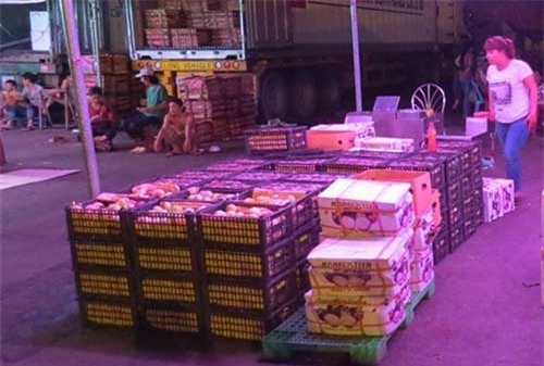 Mỗi ngày có hàng chục tấn đào được nhập về từ Trung Quốc thông qua chợ Đầu mối nông sản Thủ Đức |
