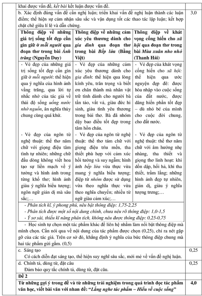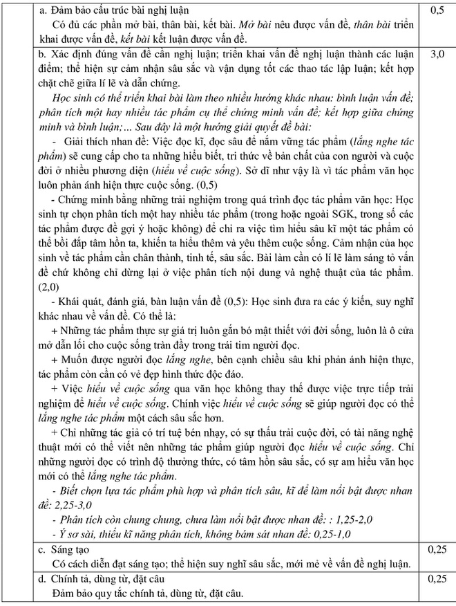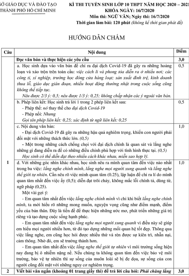 Đáp án chính thức môn Ngữ văn vào lớp 10 TP.HCM năm 2020:
