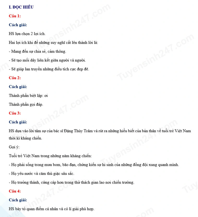 Đáp án gợi ý môn văn của Tuyển sinh 247: