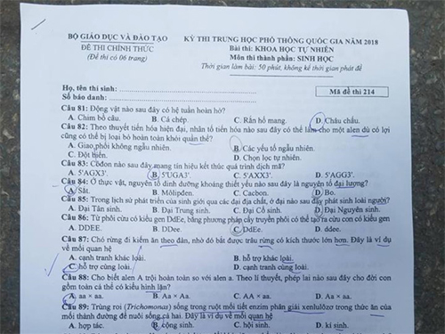 Xem thêm: Đáp án đề thi THPT Quốc gia 2018