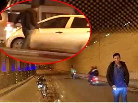 Điều khiển xe máy đi giữa đường, người đàn ông say rượu bất ngờ dừng xe, lao đến chặn đầu xe ô tô, dọa nạt tài xế rồi cầm gạch đập vỡ kính một xe ô tô.