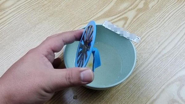 Bây giờ, bạn hãy kiểm tra cách thức hoạt động của nắp cống thoát nước nhà vệ sinh. Khi đổ nước vào nắp cống thoát nước, nước sẽ chảy xuống dưới như bình thường, nhưng khi ngừng đổ nước thì phần thổi khí của quả bóng bay sẽ tự động đóng lại. Sau khi cống được bịt kín, nó không những có thể ngăn mùi hôi bốc lên mà còn ngăn một số loại côn trùng nhỏ bay lên.