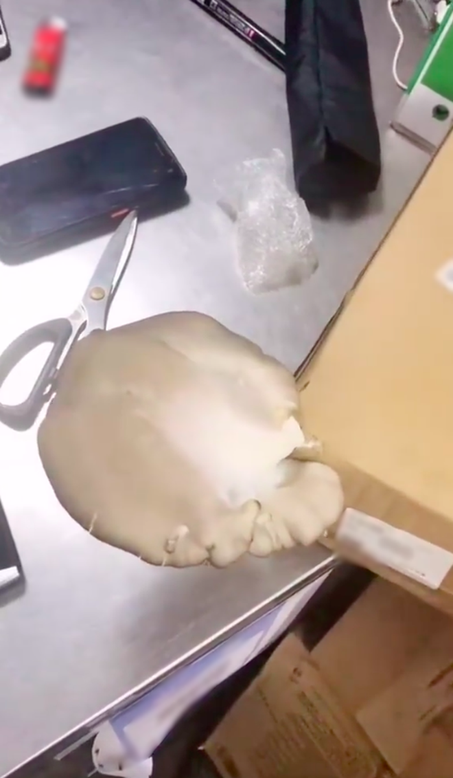 Cây nấm mọc ra từ thùng hàng được một số netizen nhận ra là nấm bào ngư xám - một loại nấm có thể ăn được. Dù vậy có lẽ không ai dám ăn nấm mọc ra từ thùng hàng này mất…