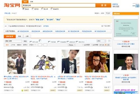 Tờ Nhân dân nhật báo cho biết, những ngày này, trên trang web mua sắm trực tuyến lớn nhất Trung Quốc là Taobao, các mẩu tin “Tuyển bạn trai” xuất hiện ngày càng nhiều, và giá cả thì cũng rất đa dạng tùy theo yêu cầu của “nhà tuyển dụng”. Trung bình, giá để thuê được một người bạn trai “đạt yêu cầu” là khoảng 82 USD/ngày, và thậm chí đã xuất hiện những lời đề nghị giá lên tới 1.300 USD/ngày, tuy nhiên giá phổ biến nhất là khoảng 800 nhân dân tệ/ngày (khoảng 132 USD).