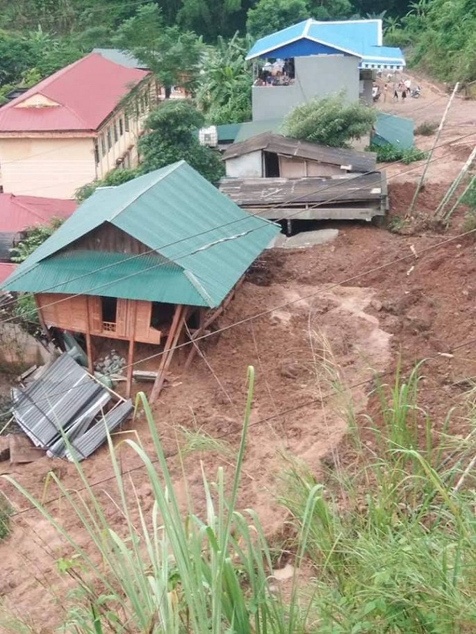 Nhiều nhà dân tại xã Trung Sơn cũng bị hư hỏng nặng nề do sạt lở đất.