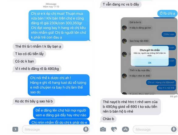 Liên hệ với chủ nhân bài viết, chị H.Tr cho biết: ''Mình đã đăng giá con tôm trong bài rồi nhưng lúc đó mình về quê, nhờ ship mang đến thì bạn ấy nói không nhận vì hết tiền. Rõ ràng lỗi nhầm lẫn giá là lỗi do bạn ấy, vậy mà bạn ấy còn chặn luôn Facebook mình, mình phải nhắn tin qua tin nhắn thường. Mình bức xúc là bức xúc ở thái độ và cách ứng xử của bạn ấy''.