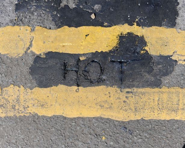 Nắng đã khiến nhiều con đường nhựa ở Anh bị tan chảy, nhớp nháp. Người ta thậm chí có thể viết cả chữ HOT trên mặt đường nhựa ở phố Duke, thành phố Castlefield khi nhựa đường bị chảy. (Ảnh: Internet)