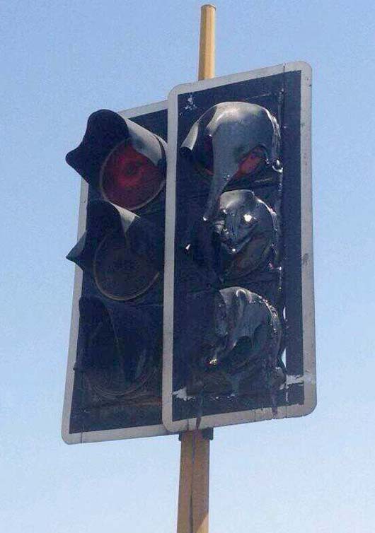 Mùa hè năm ngoái, bang Arizona của Mỹ đã khiến cả thế giới bất ngờ về cái nóng đỉnh điểm khi nhiều đồ vật được đặt ở những nơi công cộng đã bị tan chảy. Thùng chứa rác, cột đèn giao thông, biển báo giao thông, sơn trên những biển báo… tất cả đều tan chảy dưới cái nắng nóng hơn 50 độ C. (Ảnh: Internet)