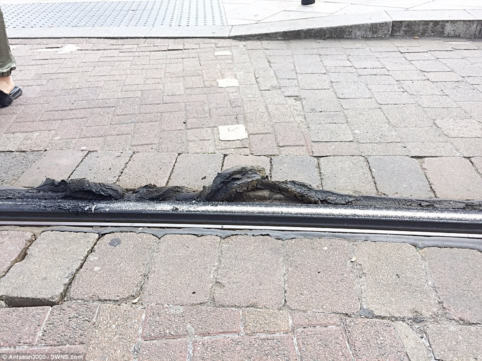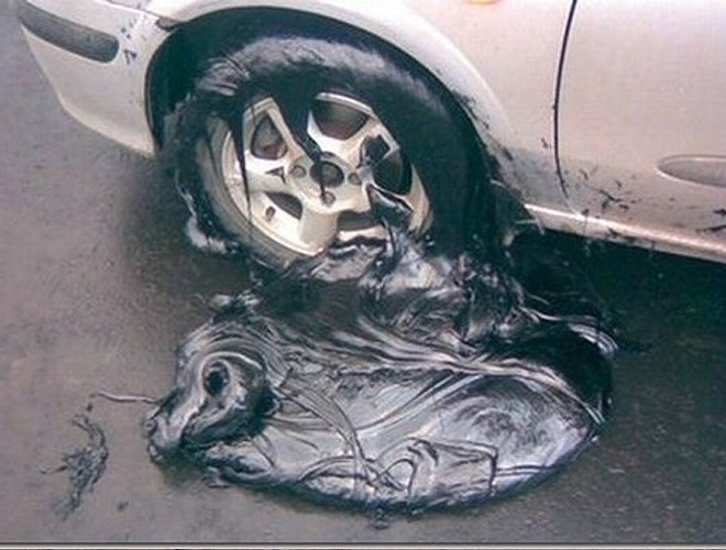 Nhựa đường đã chảy do nhiệt độ tăng cao. (Ảnh: Internet)