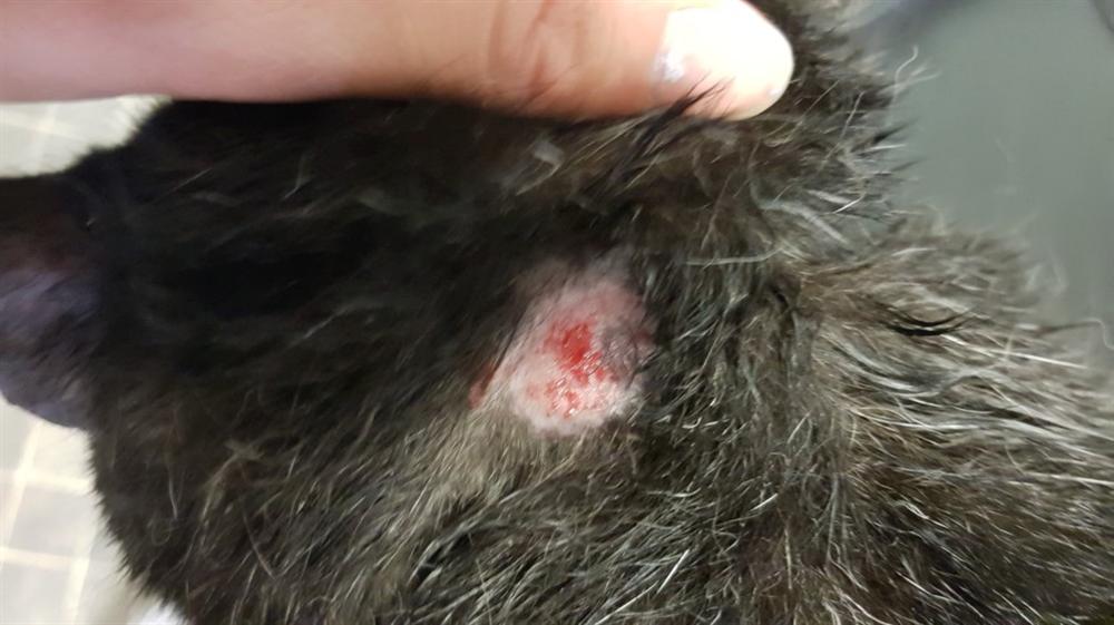 Chú mèo này cũng chịu ảnh hưởng nặng nề từ cái nắng nóng kinh hoàng ở Anh vào những ngày gần đây. Nhiệt độ tăng cao đã khiến cho dây đeo cổ của chú ta bị chảy và nóng đã làm bỏng phần cổ của mèo. Chủ nhân của mèo sau khi thấy chú ta không thoải mái lắm đã kiểm tra kỹ và phát hiện ra sự việc. (Ảnh: Internet)