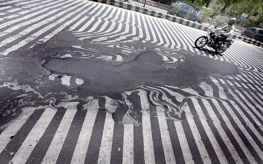 Năm 2016, Ấn Độ cũng đã trải qua cái nóng kỷ lục khiến mặt đường ở nhiều khu vực đã bị biến dạng.