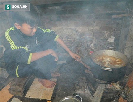 Con trai thứ 2 của chị Trang nấu bữa ăn trưa |