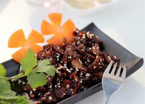 Bước 3: Bật bếp, cho xì dầu vào trong chảo, sau đó cho các miếng thịt bò vào. Đảo đều, sau đó, đổ lon coca vào đun sôi trong 5 phút, sau khi nước sốt hơi cạn, thêm bột hạt tiêu, bột ớt, bột thì là, hạt vừng trắng rang vào, trộn đều là được. Khi ăn, thái thịt bò om coca thành các miếng vừa ăn.