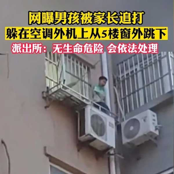Nhưng vì né mãi không được nên cậu bé quyết định nhảy từ chỗ mình đang đứng - tầng 5 của tòa nhà - xuống đất. Điều đau lòng nhất là khi nhảy xuống, cậu bé hét lên: “Mẹ ơi đừng đánh con!”.