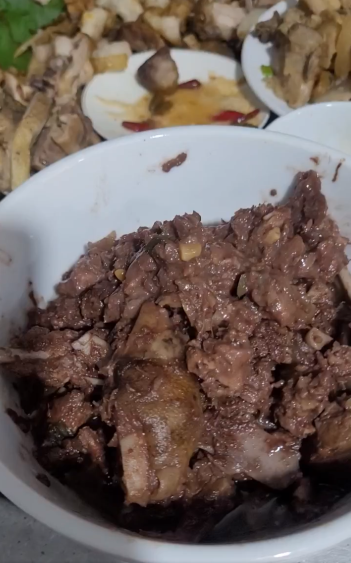 Trong đó, có 1 món chị Quyên chưa từng biết đến nhưng sau khi nếm thử lần đầu lại thích ngay. Đó là nhựa mận (tùy nơi còn gọi là rượu mận, rựa mận). Món này được chế biến từ thịt lợn hoặc thịt chó, ướp chút rượu để khử mùi, giúp thịt mềm mọng.