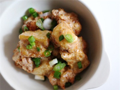 -1 lòng đỏ trứng muối -20g hành lá -1-2 tép tỏi -2 muỗng canh bột bắp |