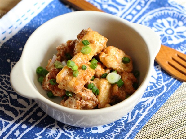 ![]() | ![]() Gắp đậu ra đĩa, rắc hành lá xắt nhỏ lên trên mặt. |