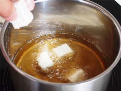 ![]() | ![]() Làm nóng chảo sâu lòng hoặc nồi nhỏ với lượng dầu ngập mặt đậu khi chiên, thả đậu vào chiên trên lửa vừa cho đến khi lớp vỏ ngoài ngả màu vàng nâu. Vớt đậu ra đĩa có lót sẵn giấy thấm dầu cho ráo bớt dầu thừa. |