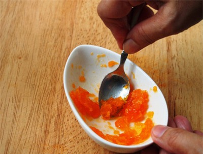 ![]() | ![]() Lòng đỏ trứng cho ra bát, dùng muỗng nhỏ hoặc nĩa tán nhuyễn. |