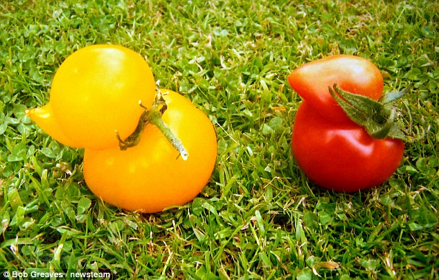 Ông George Wall, 80 tuổi ở Shrewsbury, Shropshire đã nghĩ rằng mình nhìn nhầm khi phát hiện ra hai quả cà chua hình chú vịt trong khu vườn của gia đình.