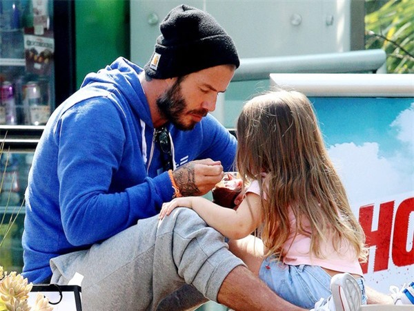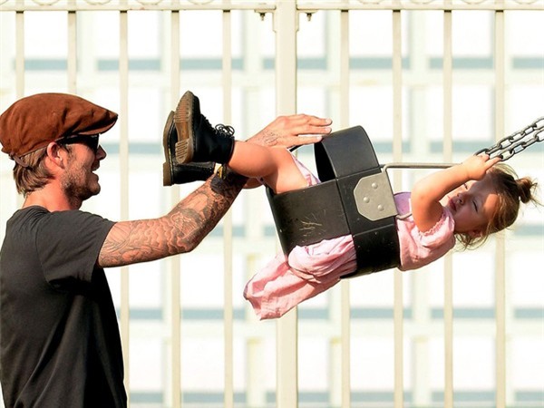 Cũng không khó để bắt gặp những khoảnh khắc "tình phụ tử lên ngôi" như khi Beckham tận tình đút từng thìa kem cho Harper, hay anh nhẹ nhàng đẩy xích đu cho con gái. Tất cả chỉ chứng minh rằng Beckham là 1 ông bố tuyệt vời, như bao người làm cha khác trên thế giới này.