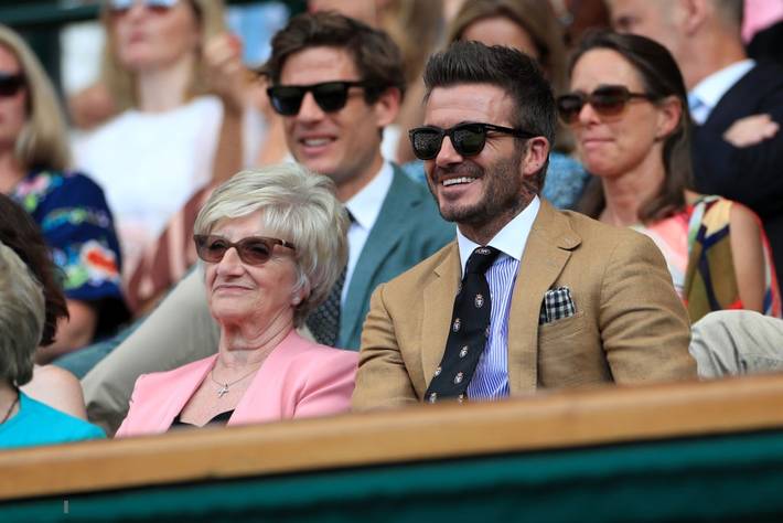 Beckham cùng mẹ - bà Sandra - vui vẻ thưởng thức trận bán kết đơn nữ giữa Serena Williams và Barbora Strycova.