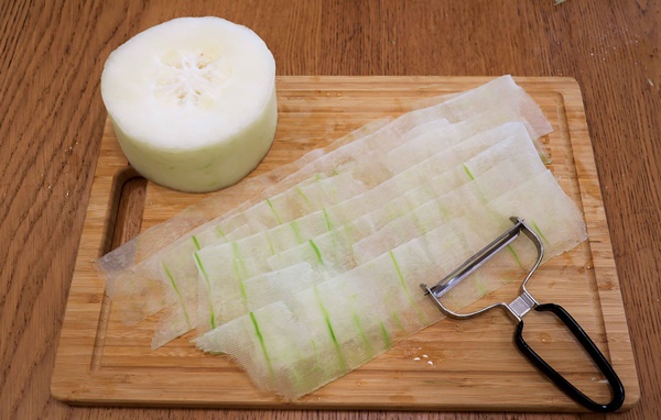 4. Dùng dụng cụ nạo, nạo các lát bí thật mỏng.