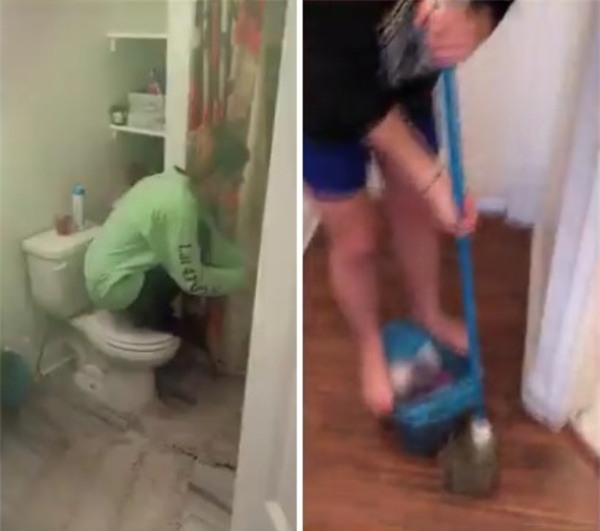 Để làm được điều này, ban đầu các cô gái đã dụ chú chuột vào khu nhà vệ sinh nằm ngay gần cầu thang rồi nhanh chóng nhốt chặt nó bên trong.