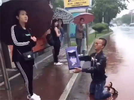 Một đoạn video được cho là ghi lại cảnh cầu hôn lâm ly bi đát của một chàng trai người Trung Quốc hiện đang thu hút sự chú ý rất lớn của dư luận nước này.