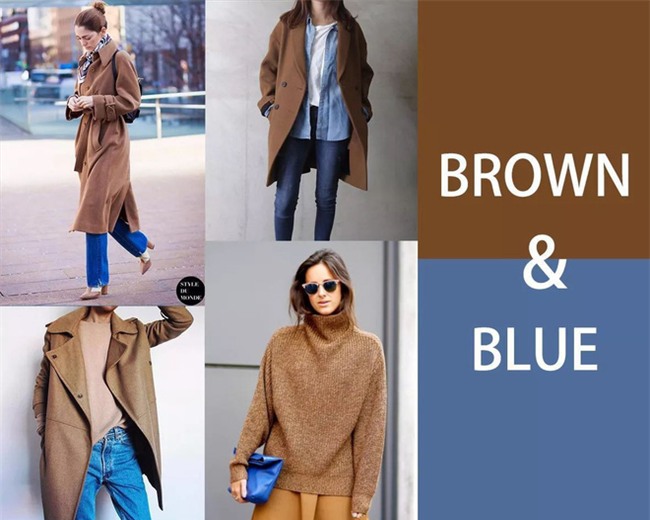 Nếu như đỏ burgundy cộng hưởng cùng nét cổ điển hoài niệm, thì gam màu xanh dương hay xanh denim sẽ thổi luồng gió tươi trẻ, năng động đến với nét trầm ấm của màu nâu. Hai gam màu tưởng chừng không liên quan nhưng lại có thể hỗ trợ tuyệt vời với nhau trên cùng một set đồ. Đơn giản nhất là cách diện jeans/denim cá tính cùng áo khoác nâu ấm áp dạo phố những ngày đông lạnh. Hoặc với những dịp đặc biệt, bạn có thể chọn thiết kế áo với những cách điệu mới lạ kết hợp cùng chiếc đầm da nâu bóng sáng, tạo nên một set đồ đẳng cấp, sang trọng và quyến rũ hơn.