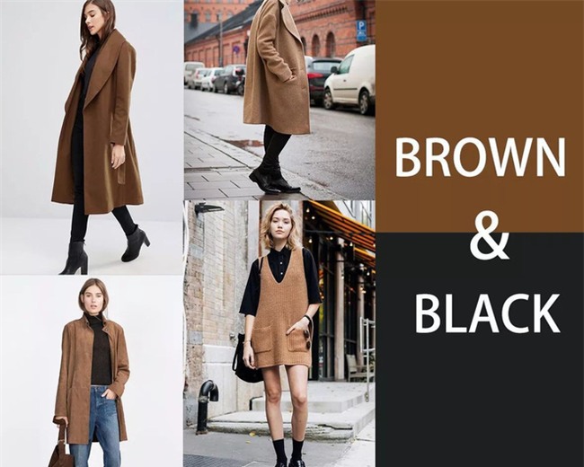 Nâu và đen đều là hai gam màu trung tính cơ bản nhất trong bảng màu thời trang nên chắc chắn bạn sẽ chẳng cần băn khoăn hay suy nghĩ bất kỳ điều gì khi quyết định lựa chọn chúng song hành cùng nhau trên một set đồ. Ấn tượng mà hai gam màu này mang lại là sự cơ bản đến kinh điển, thanh lịch và chuẩn mực tuyệt đối nên cách kết hợp này rất phù hợp với môi trường công sở nghiêm túc. Và để cho tổng thể gam màu trên trang phục trở nên hài hòa hơn, bạn có thể thêm vào những gam màu sáng khác giúp cân bằng và ngăn cách hai mảng màu có phần trầm tối, nghiêm nghị đó.