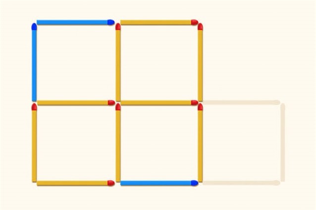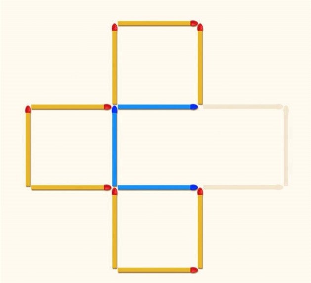 Chỉ cần di chuyển 2 que diêm từ vị trí được làm nhạt màu đến vị trí màu xanh dương.