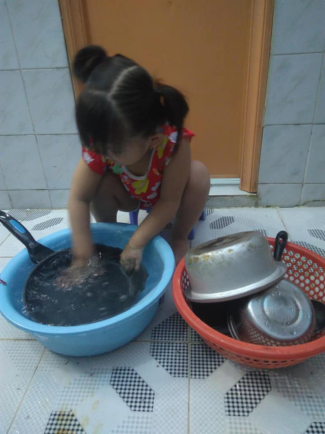 Yến Nhi thậm chí đã biết rửa bát, phơi và phân loại áo quần, cọ rửa nhà tắm...