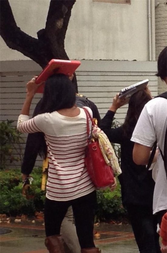 Chắc có lẽ dù (ô) ở đất nước này đắt quá nên các cô nàng đã dùng laptop