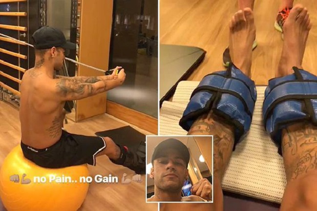 Ngay cả khi bị trấn thương, Neymar cũng không quên tới phòng gym luyện tập.