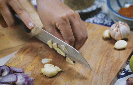 - Cắt hành, tỏi thành miếng lớn.