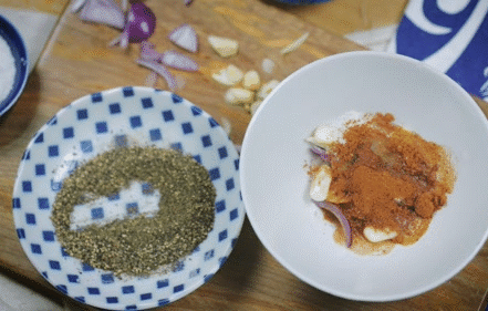 - Trộn đều hành tỏi, 1 muỗng canh rượu trắng, 1/2 muỗng cafe đường, 1/2 muỗng cafe muối, 1 muỗng cafe ngũ vị hương và chút tiêu.