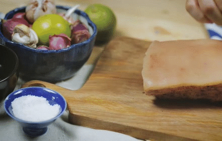 - Lấy thịt ra, quét 1 ít nước cốt chanh lên mặt.