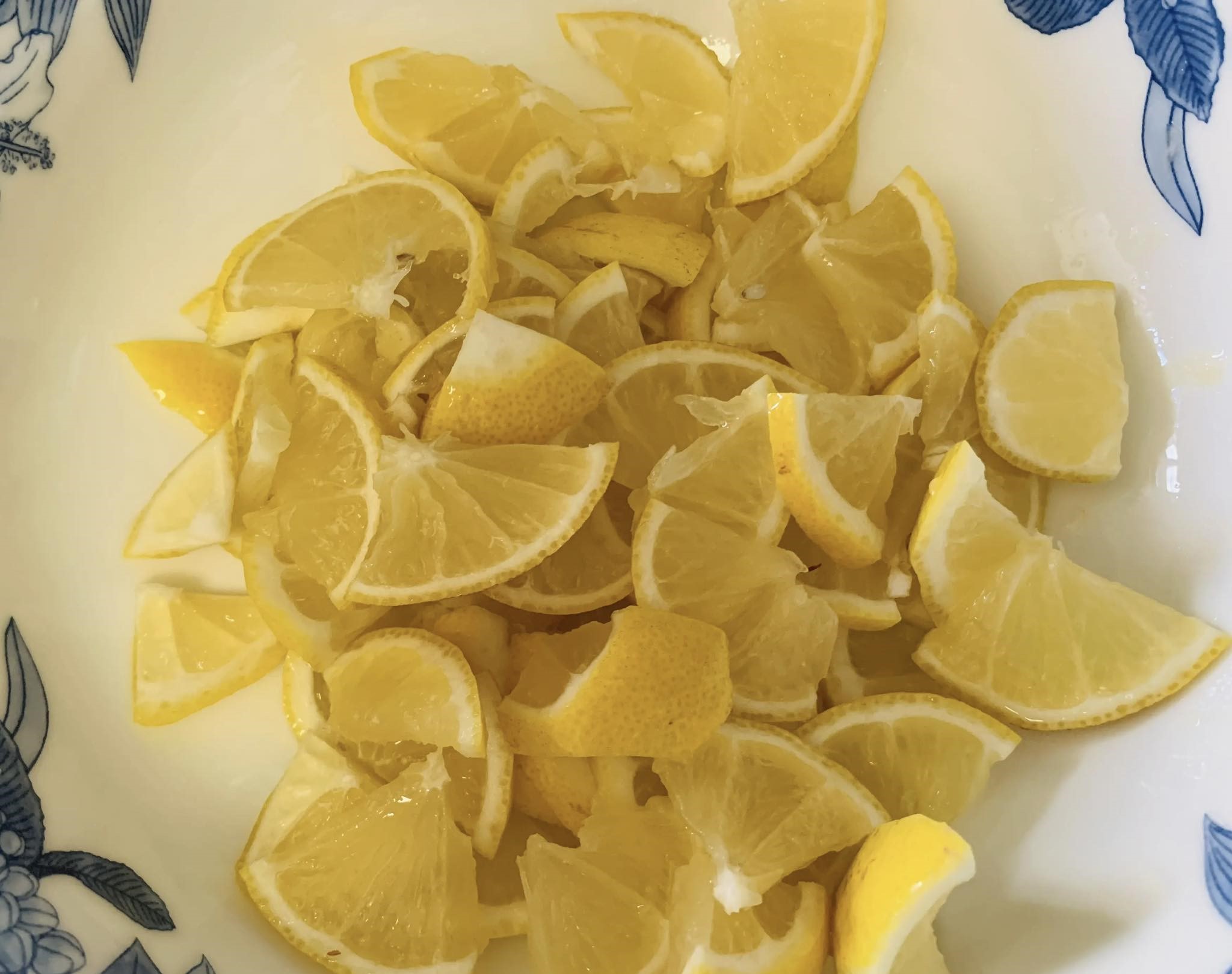 Lưu ý ở bước này: Không cần gọt vỏ chanh, cũng không nên cắt quá dày. Loại bỏ hạt giúp ngăn chặn vị đắng tiết ra.