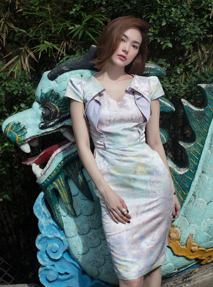 Váy phom suông cổ điển với phần cổ được cách điệu tạo nét yêu kiều, đồng thời giúp cho các cô gái yêu thích sự nữ tính đầy ý nhị.