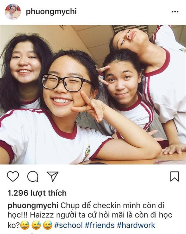 Trên Instagram cá nhân, Phương Mỹ Chi thu hút đông đảo chú ý khi đăng tải hình ảnh diện đồng phục, tươi cười rạng rỡ bên bạn bè. Kèm theo đó, "chị Bảy" viết: "Chụp để checkin mình còn đi học! Haiz người ta cứ hỏi mãi là còn đi học ko?". Là sao nhí được săn đón nhất hiện nay với lịch trình làm việc bận rộn, dư luận từng đặt nghi vấn Phương Mỹ Chi đã bỏ học để đi hát. Chính vì thế, cách đáp trả đầy khéo léo của giọng ca "Quê em mùa nước lũ" khiến đông đảo người hâm mộ vô cùng thích thú.