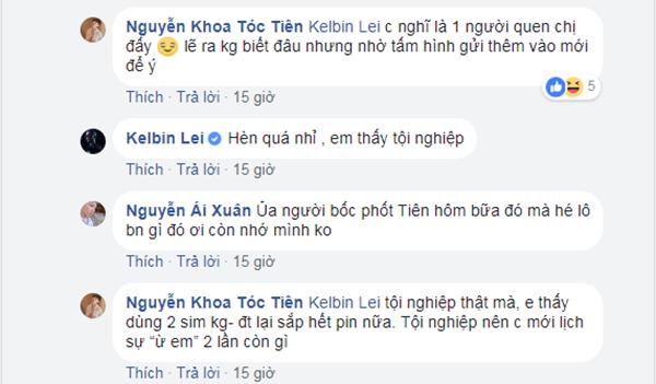 Một lần nữa, Tóc Tiên lại phản pháo antifan một cách vô cùng bình tĩnh “Ừ em” đi kèm theo hình mặt cười. Tài khoản facebook này được cho là một tài khoản fake, được tạo ra với mục địch công kích nữ ca sĩ. Bên cạnh đó, Tóc Tiên còn ẩn ý bày tỏ quan điểm rằng đứng sau chuyện này là một người mà cô đã quen từ trước và đã có thâm niên kể xấu cô nhiều lần.