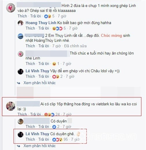 Vĩnh Thụy chúc mừng sinh nhật của Hoàng Thùy Linh.