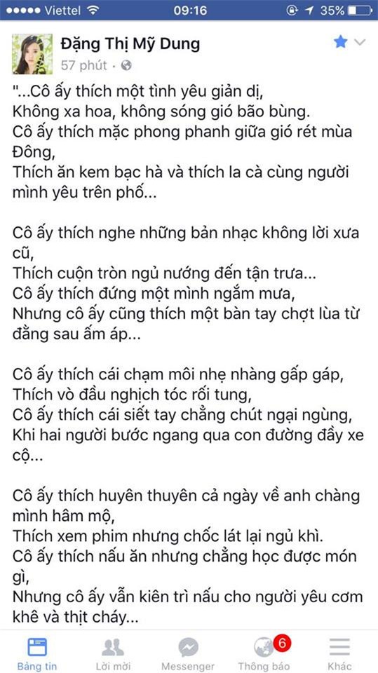 Hình ảnh và bài thơ được Midu đăng tải cách khoảng 1 giờ đồng hồ nhận được nhiều chia sẻ. Tuy nhiên trước nhiều lời bình luận của mọi người về mối quan hệ với Phan Thành cô đã xóa status này.