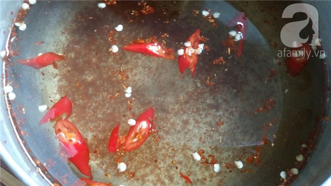 Đun sôi 350ml nước với đường cho đường tan hết. Để nước đường nguội thì cho 2 thìa cà phê muối, ớt bột và ớt tươi cắt lát cùng tỏi đập dập vào, để nghỉ khoảng 10 phút.